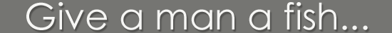 “Give a man a fish; you have fed him for today. Teach a man to fish; and you have fed him for a lifetime”—Author unknown |